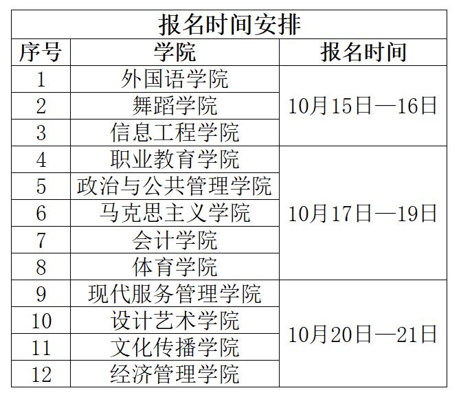 报名时间各学院按轮次进行,报名时间如下: